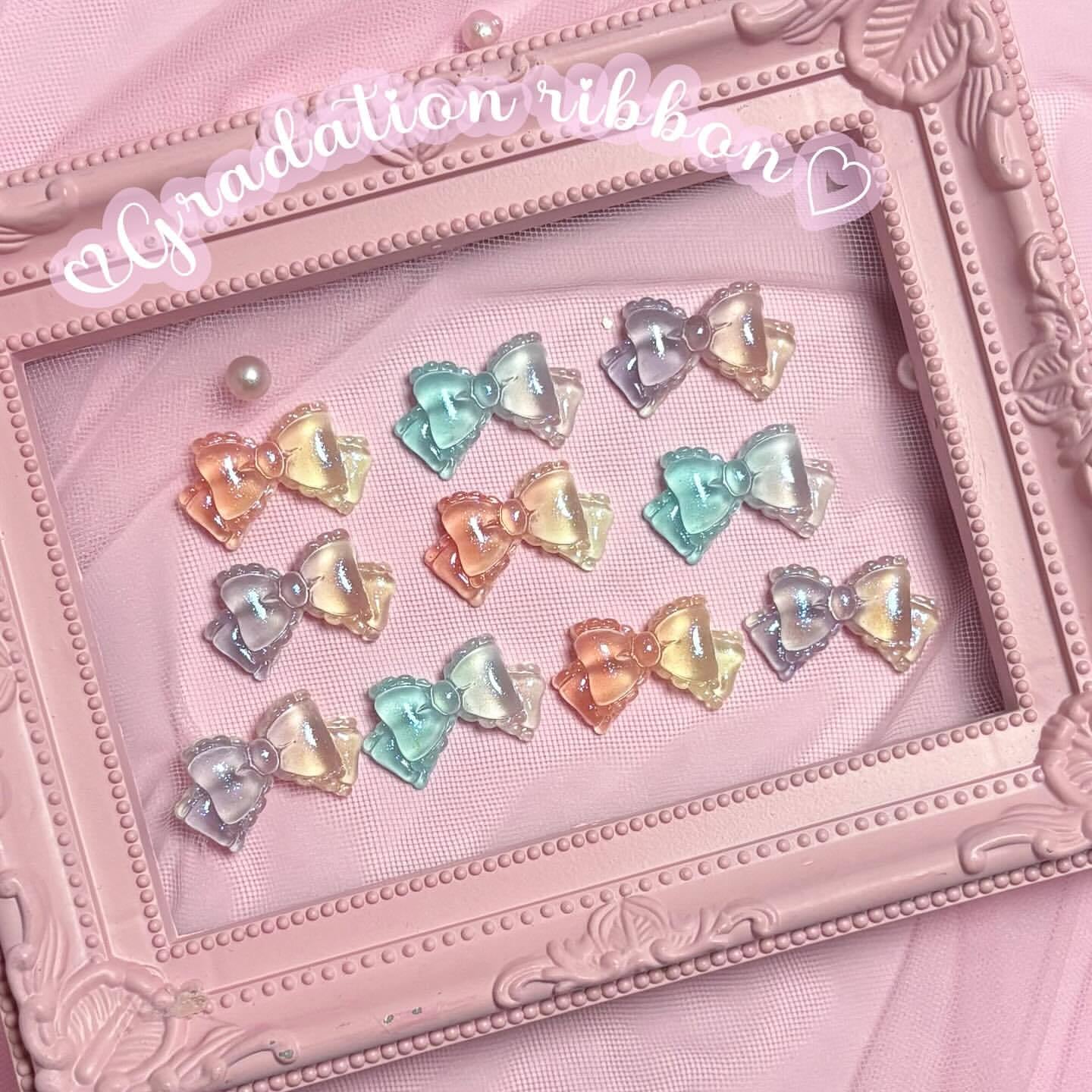 ♡10個入り♡グラデーションカラーリボンデコパーツ♡
