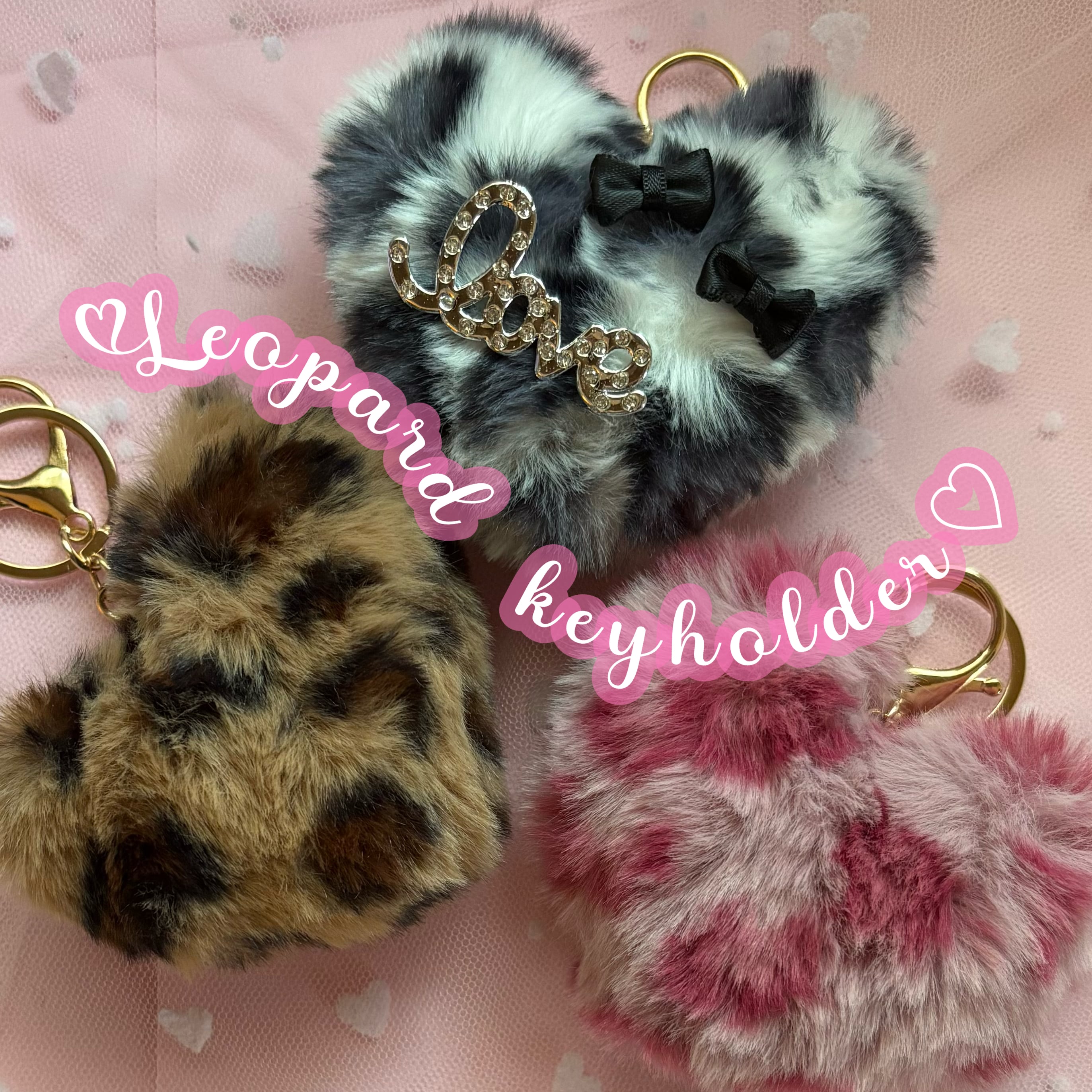 ♡ふわっふわ♡ヒョウ柄ハート型キーホルダー♡